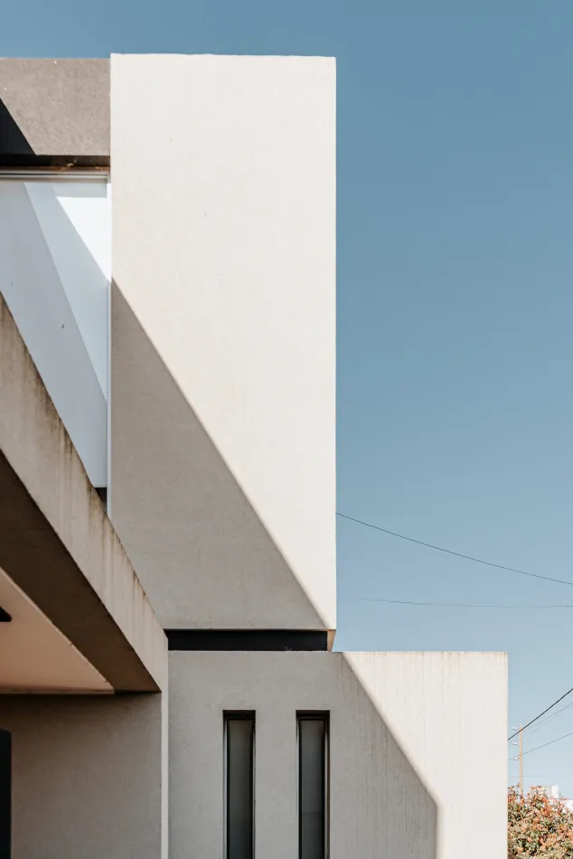 La morfología de esta casa surge de la superposición de varios volúmenes materializados como cajas independientes; cajas que se cierran hacia sus laterales y se abren solo en su frente; en consonancia con las buenas orientaciones y las caras libres con perspectiva larga.