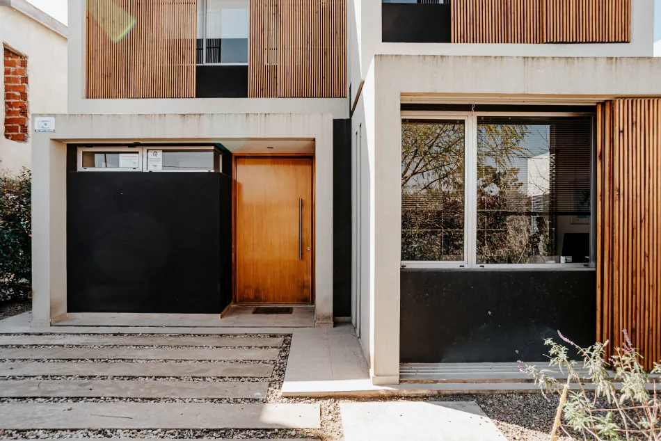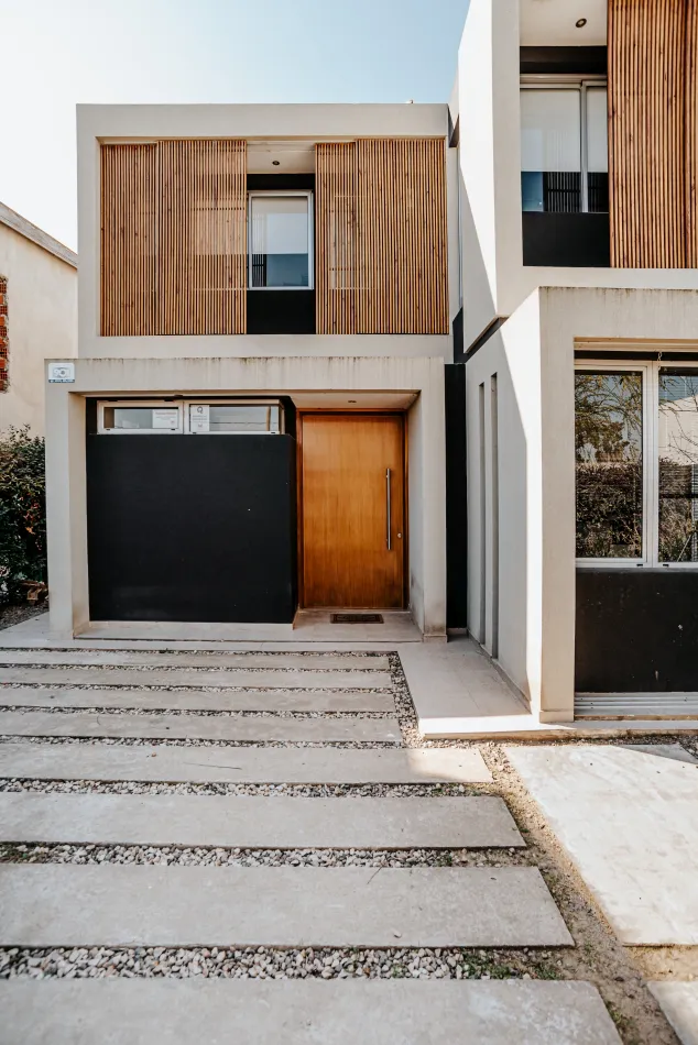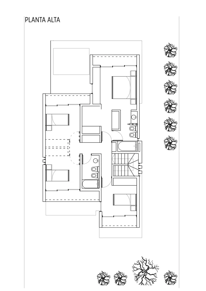 Es una vivienda de carácter compacto de casi 230 m² de superficie, resultante de varias restricciones respecto de retiros laterales y de frente, así como la pretensión de un parque amplio. El núcleo vertical y los servicios se ubican en el centro de la planta del proyecto, minimizando espacios de circulación.