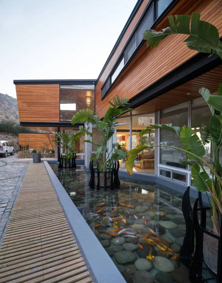 La obra, realizada por el Estudio GITC arquitectura, se ubica en una ladera norte a los pies de un valle transversal de la Cordillera de Los Andes, a 10 kilómetros al nororiente de Santiago de Chile, mirando el valle de Chamisero.