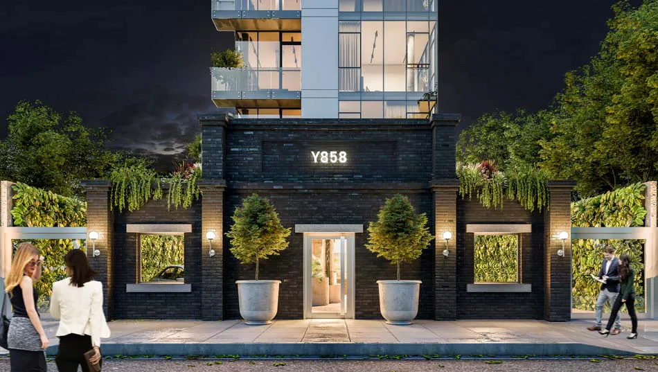 Y858 comienza su fase estructural con un diseño moderno y de avanzada utilizando una estructura de hormigón armado mediante una técnica de entrepisos sin vigas lo que permite tener una limpieza visual y poder diseñar los espacios interiores mucho más amplios. La piel de vidrio o curtain Wall que reviste el edificio es la misma utilizada en los proyectos más emblemáticos del país. Su sistema DVH protege sonora y térmicamente los interiores de las unidades para una mejor calidad de vida. Completando el revestimiento exterior se encuentra el Alucobond, el cual les da modernismo y calidad a todos los sectores rígidos del edificio.