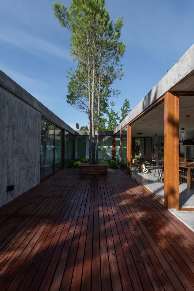 A diferencia del resto de los proyectos construidos por el Estudio integrado por los arquitectos Leonardo Valtuille y Carolina Antolini en Costa Esmeralda, se trata de una casa de uso permanente, pensada y proyectada para disfrutar lo cotidiano, con un espacio de atelier solicitado por los moradores.