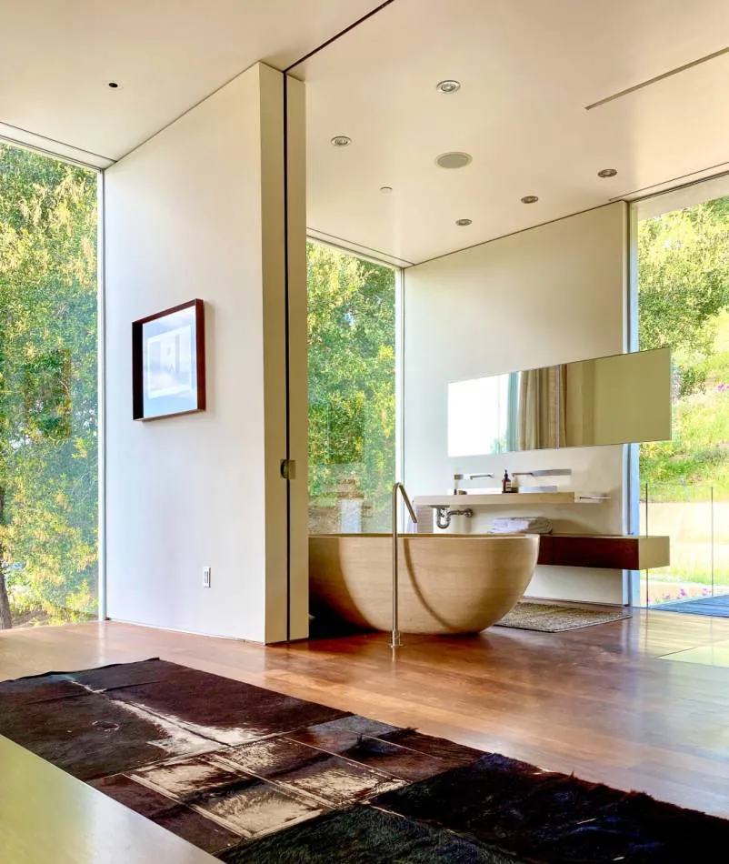 El ideal arquitectónico de Heusch comenzó a desarrollarse en el año 2000, cuando compró un alucinante terreno de aproximadamente media hectárea sobre el cual estaba decidido a emplazar su visión. Con frondosas laderas al este y vistas panorámicas sobre Benedict Canyon al oeste, Heusch se embarcó en su búsqueda por balancear su nuevacasa con la naturaleza.