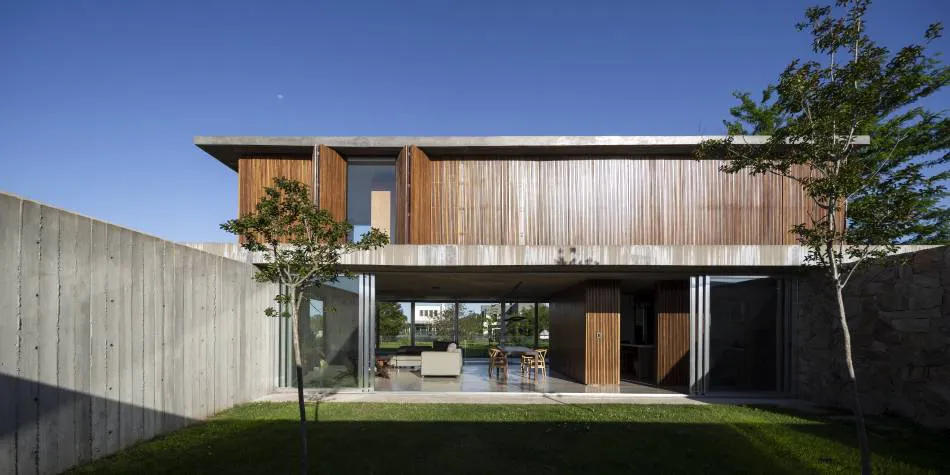 Especializados en el manejo del hormigón armado, disfrutan de trabajar con diferentes materiales y texturas, y así en sus obras vemos además del hormigón, el uso de la piedra, la madera y el hierro. “Estos materiales a la exposición del día a día, la lluvia y el sol, van mutando y hacen que la vivienda vaya tomando distintos momentos a lo largo de su vida.”