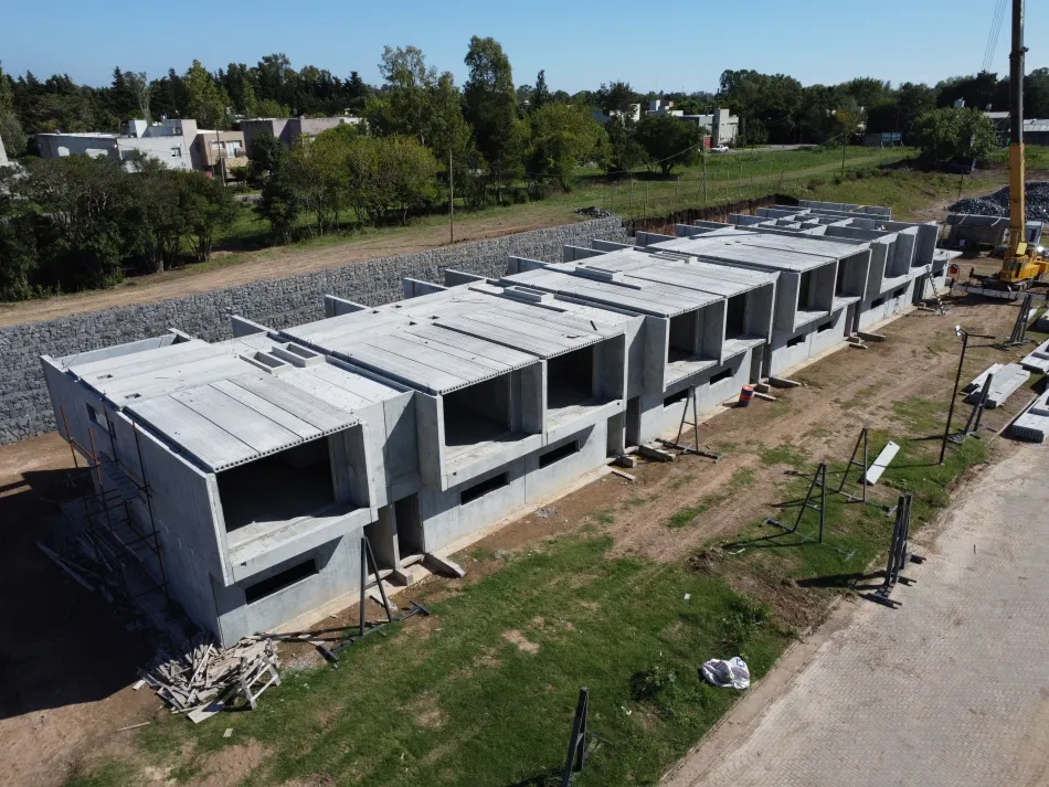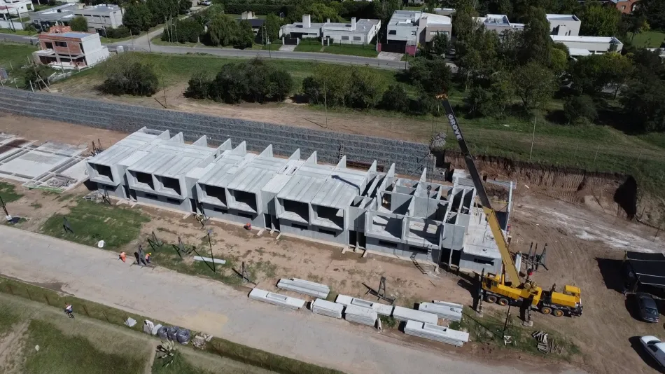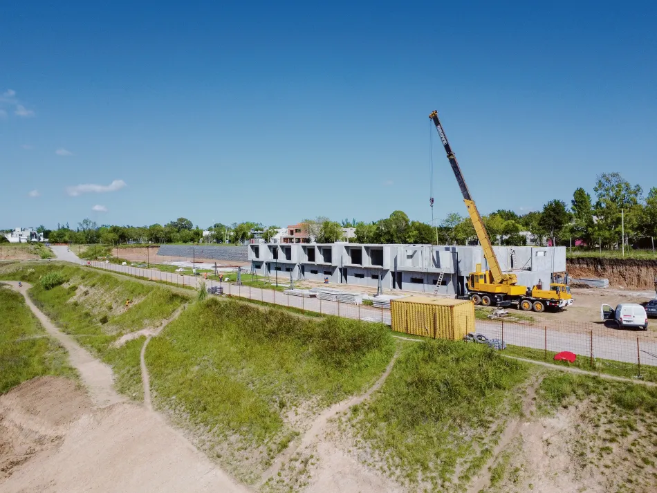En sólo 3 meses se están terminando de montar los paneles de hormigón de última tecnología para las primeras 10 unidades funcionales de Cantera Urbana. Las mismas cuentan con 120 m², 3 dormitorios, 2 baños y toilette. La climatización y el agua caliente sanitaria se obtienen por geotermia y paneles solares Y cuentan con piscina climatizada por recuperación.