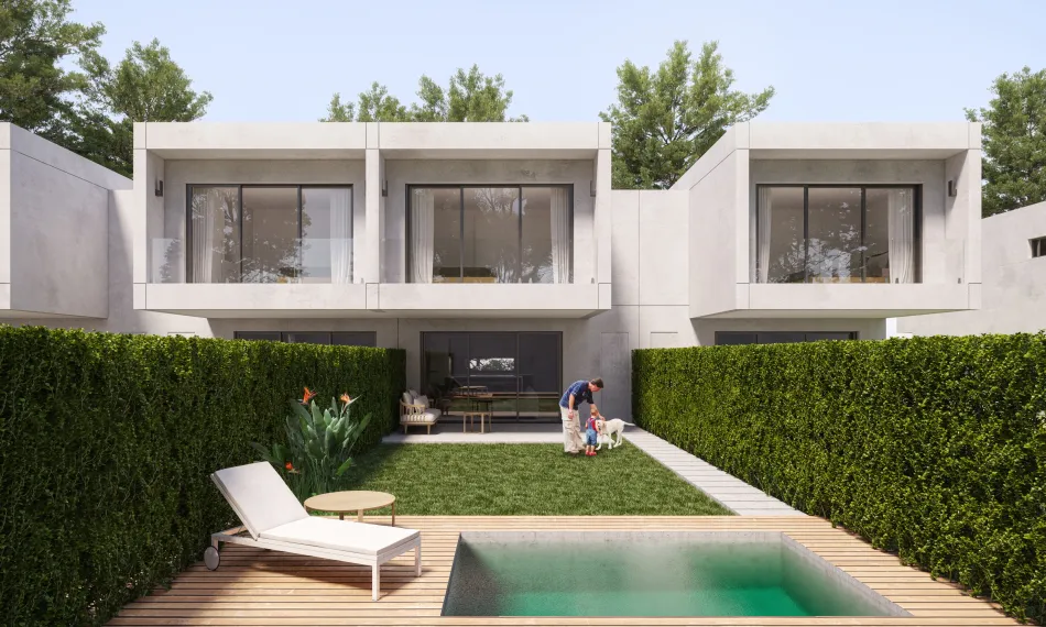 Las viviendas, de 120 m², cuentan con 3 dormitorios y parque con piscina climatizada.