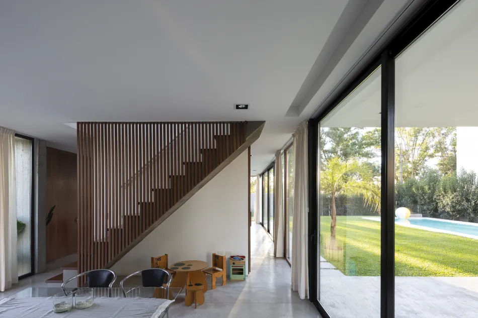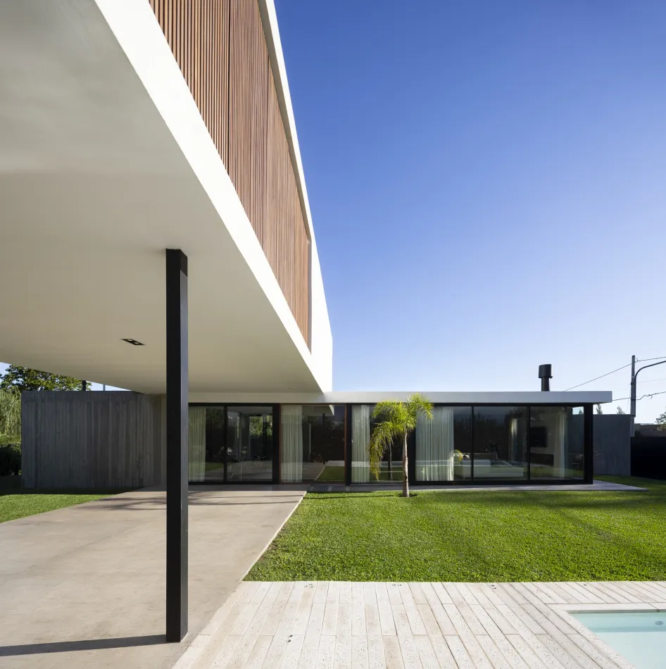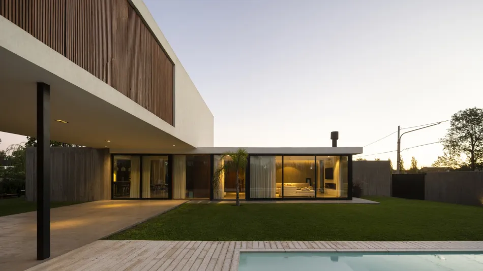 La combinación perfecta entre hormigón visto, madera y vidrio da vida a esta casa que celebra la sencillez y la sofisticación, sin perder de vista el paisaje que la rodea.