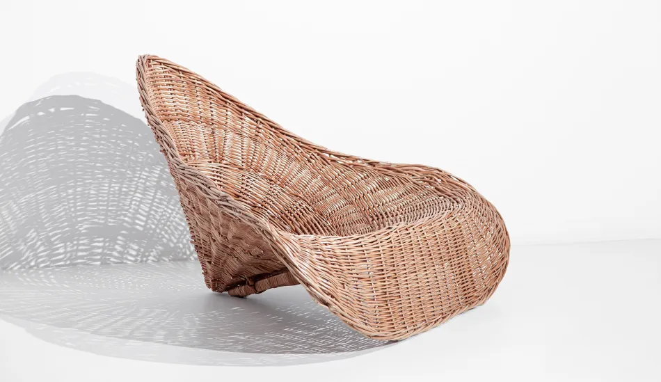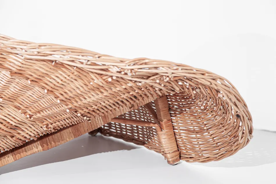 El sillón lounge “Pico” es es un sillón escultural hecho de tejido de mimbretradicional. Es el resultado de una simbiosis entre el pasado y el presente.