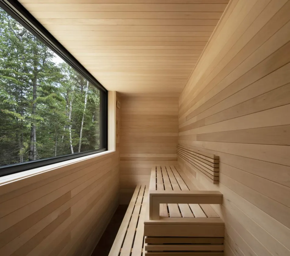 Para hacer de la casa un lugar de encuentro y turístico ideal, propicio para crear momentos memorables para las personas que se quedan allí, Architecture49 creó un ambiente elegante y funcional, lleno de instalaciones discretamente integradas. Una piscina, sauna, chimenea y spa contribuyen a la comodidad y relajación de sus ocupantes. La cocina, que ocupa un gran espacio en la planta superior, está equipada con multitud de herramientas profesionales para que cocineros aficionados y profesionales que puedan aprovechar al máximo el alto centro agrícola y culinario que es Charlevoix.