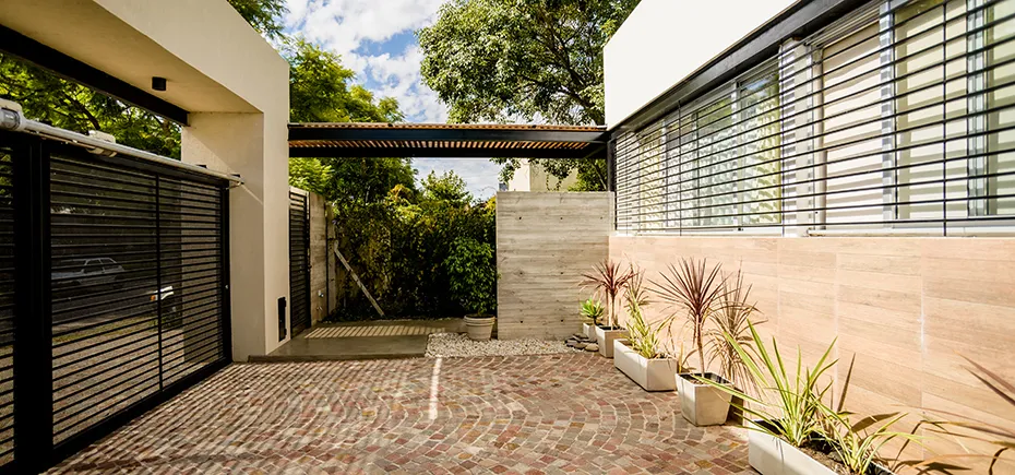 En un tranquilo barrio de La Plata, sobre un lote longitudinal planteado a partir de patios con diferentes jerarquías y funcionalidades, se desarrolla esta vivienda en una sola planta, de 150m².