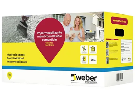 Weber.tec Membrana es un impermeabilizante bicomponente de base cementicia y alta flexibilidad diseñado para la impermeabilización de terrazas y balcones en obras nuevas donde es necesario utilizar productos flexibles e impermeables que sean compatibles con productos cementicios.