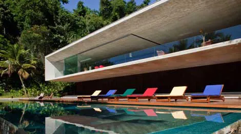 **diseñada por marcio kogan y suzana glogowski para el studio mk27, estamaravillosa casa en paraty cimienta su estética moderna en la pendiente de unmorro y la proyecta sobre la playa.