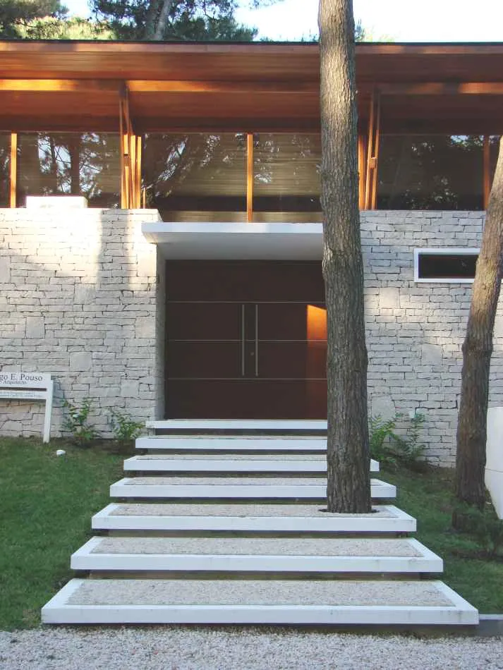 **esta casa en piedra y madera, dise ñada por el arq. hugo pouso, es el sueñode todo aquel que busca habitar en contacto permanente con la naturaleza.