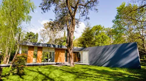 **erigida en un terreno de 1000 m ² dotado de una tupida arboleda, la casacreada por el arquitecto felipe gonzalez arzac esparce su luminosa presenciarestando pocos metros al bosque.