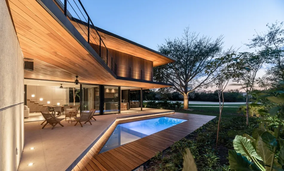 mérida, méxico. una volumetría simple y limpia definen a esta casa en laque el proyecto gira en torno al habitar el exterior desde cualquier punto dela casa.