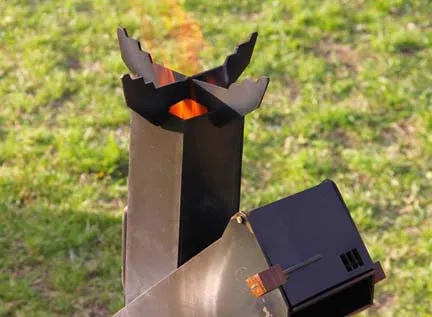 La cocina Rocket se basa en un sistema de combustión de material sólido,específicamente leña de poca densidad, más propensa a producir llama quebrasa.