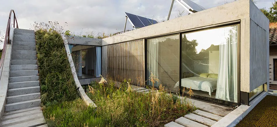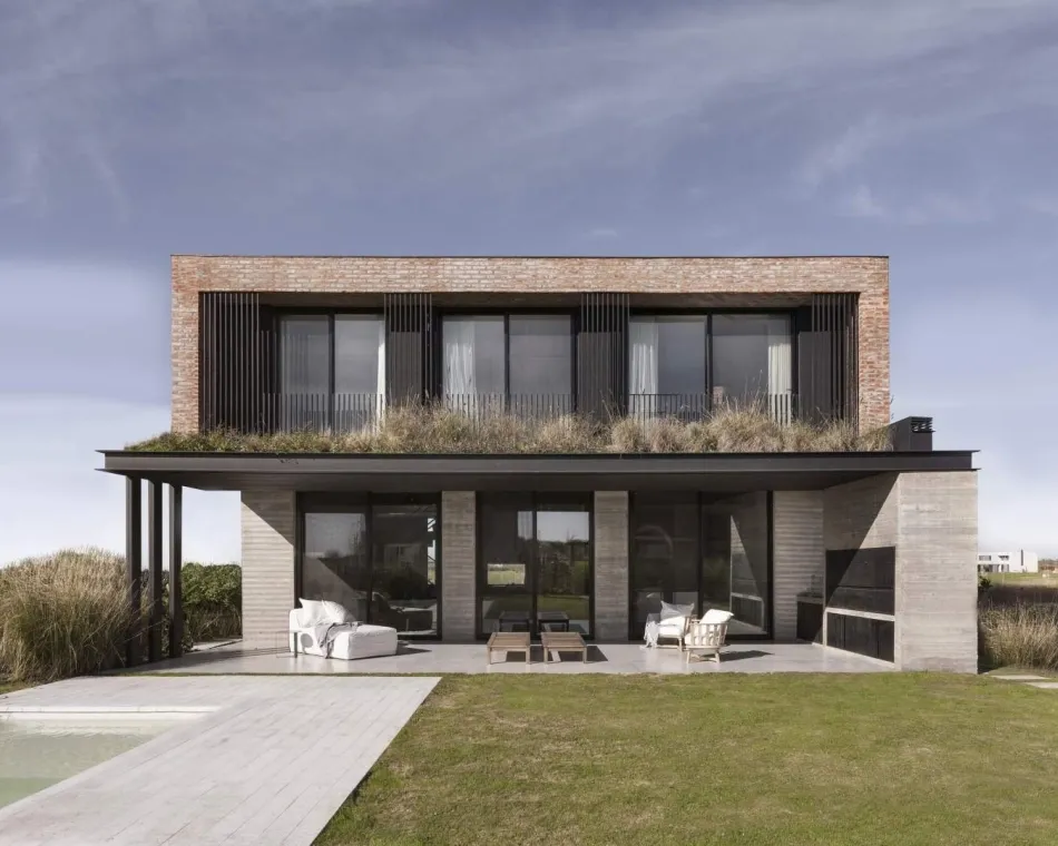 Escobar. Esta casa del estudio BAM! arquitectura busca integrarse con ellugar por medio de los llenos y vacíos, terrazas jardín y la incorporación depatios y claraboyas en la planta alta.